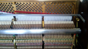 ドイツ製の弱音バーを取り付けてから、ナイトーンの製作に取り掛かります。スタインウェイの高音側のプレッシャーバーが太く厚いので、少々工夫が必要ですが、問題無く制作することが出来ました。